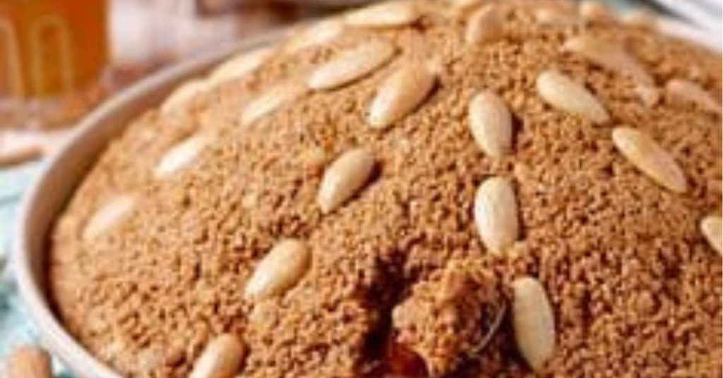 Semolina cake that’s soaked and soft, sometimes with coconut.
