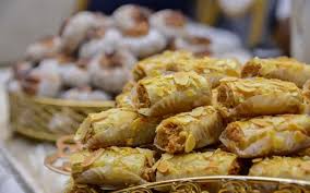 - Very sweet: chebakia, heavily soaked pieces, mkharka.